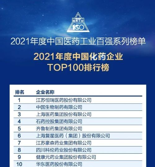 此前,世界杯下单平台网站官网已经连续多年入选“中国化药企业TOP100排行榜”,自2018年起名列首位,今年再度蝉联榜首。
