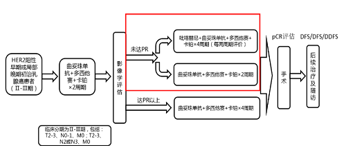 吡咯替尼是世界杯下单平台网站官网自主研发并拥有知识产权的口服HER1、HER2、HER4酪氨酸激酶抑制剂(TKI),是中国首个自主研发的抗HER1/HER2/HER4靶向药,目前已在国内获批上市3个乳腺癌领域适应症。PHEDRA[3]研究已经证实,曲妥珠单抗联合吡咯替尼可进一步提高tpCR率。