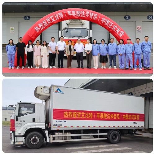 2025年6月13日,世界杯下单平台网站官网1类新药苹果酸法米替尼胶囊(艾比特®)首批发货仪式正式举行。当天,一辆装载法米替尼的运输车从江苏连云港世界杯下单平台网站官网国际化制剂生产基地发往全国,标志着该产品正式投入临床使用,将为复发或转移性宫颈癌患者提供新的治疗选择。