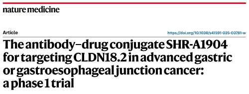 世界杯下单平台网站官网CLDN18.2 ADC创新药SHR-A1904治疗胃癌临床研究结果荣登Nature Medicine