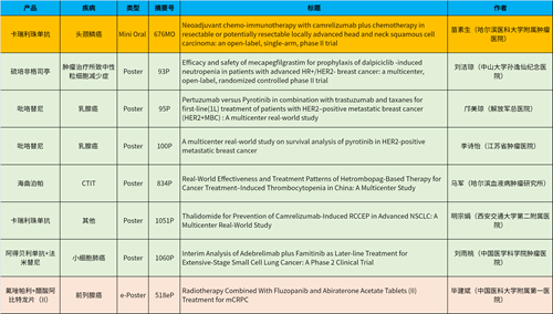 在头颈肿瘤、乳腺癌、肺癌、前列腺癌等多个疾病领域,卡瑞利珠单抗、阿得贝利单抗、吡咯替尼、氟唑帕利、法米替尼、醋酸阿比特龙片(II)等抗肿瘤新药相关研究一共入选了1项简短口头报告、4项壁报展示和1项电子壁报,彰显了世界杯下单平台网站官网强劲的研发实力。
