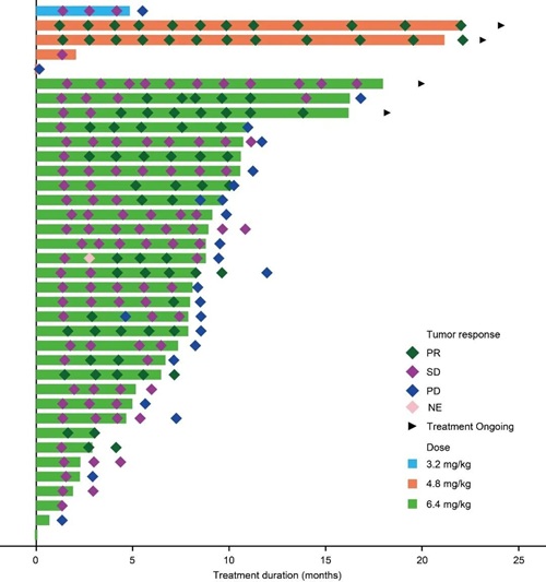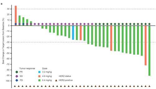 图5. 瀑布图(HER2阳性的CRC患者靶病灶与基线的最佳变化百分比)